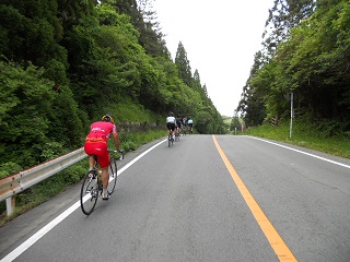 | 1発目の箱石峠へ。 A吉さん、すんげぇ〜強いんです。 昨日から思ってましたけど、 上りで競う気になりません。(^^ヾ 今年の阿蘇望も既にエントリーしてるとか。 初めて楕円クランク見たんですが、 チェーンがウニョウニョ動いてるのが ちっと気持悪かったっす。(爆 |