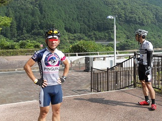 | こうやって走りながらの 写真撮るのもココで最後となりました。 はい、途中から余裕なくなった!(+o+) 登りでぜぇ〜はぁ〜してるのは 俺だけ状態。(自爆 前を走る住処さんにはムキムキの 脹脛見せつけられて それだけでも戦意喪失でした。(T_T) |