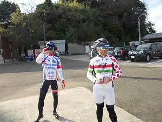 | 七ツ釜の自販機で私がドリンク買う為にちょっと休憩。 で、再スタートしようとしたら、誰かが 「アレ?ワッキーさんとマナブ君は?」と。 居ません、居りません。 ひょっとしたら、脚が売り切れて、道の駅に直帰した? ワッキーさんにTELしてみます。 問題児(子供ではないけど・・・)はやってくれてました。 七ツ釜に左折するポイントに気付かず、そのまま直進! ど〜せなら、そのまま長崎市内まで行かせておくべきだったか?ww ワッキーさん、マナブ君合流の後七ツ釜からゴールの道の駅に上ります。 が、またもや問題児はやってくれます。 住処さんの後輪に自分のフロントタイヤをヒットさせて、 こて〜〜んと地球に直KISS!(爆 毛が無くて・・・いや、怪我無くて良かったけど・・・ww |