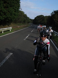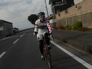 | ココからは快適海岸沿い。 住処さんに最初牽いてもらって、 途中から私が先導。 43km/hくらいのスピードで・・・。 しか〜し、15秒しか持ちません!ww で、A吉さんにスイッチ。 そのままのスピードでグイグイ牽きます。 はい、A吉列車!(爆 先月の終盤のA吉列車の再来です。 でも、今回は自転車旦那さんが居ません。 後を見ると住処さんも付いてきません。 このまま牽いてもらうか?・・・ 最後は上り坂って言うしね・・・ 決めた! A吉さん、バイバイ♪(爆 そんな私に気付かぬまま、 乗客が居ないA吉列車は走り去って 行きましたぁ〜〜♪ Good-Luck!(^_-)-☆ |
