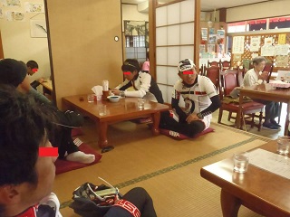 | AM8:00過ぎ。 やすさんから本日の簡単なコース説明。 その後、各自簡単な自己紹介っす♪ |
