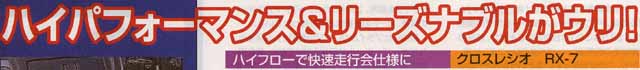 じゃじゃ〜んと、カッコ良く掲載! FD3S用の17inchホイールがイカシテマス。(笑) 雑誌上では、リップスポイラーに貼った当HPの URLがクッキリでした。(^^)v |