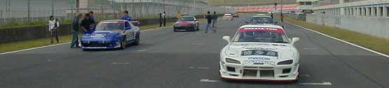 | 各車グリッドに整列です。 今回は台数が少ない為、結構前列です。<ゾンビ号 ちなみに写ってませんが、ARIさんのFD3Sがポールポジションです。 |
