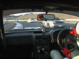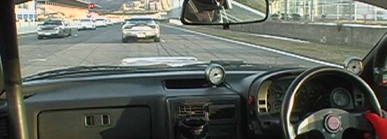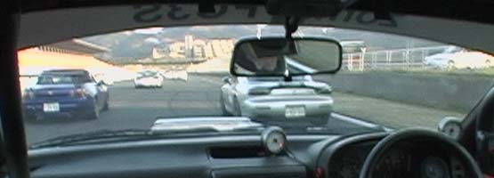 | 国産車連中は、やはり3コーナー〜1ヘアまで速いっす! 抜けない・・。(@_@) ま、前を走る車達は、私よりラップタイム速いから当然か。(^_^;) あれ?一番前に見えるのは、ペケさんの32R?? |