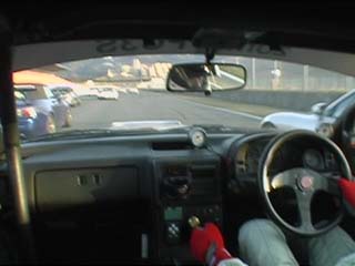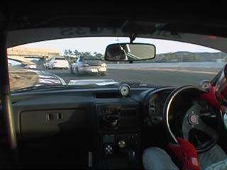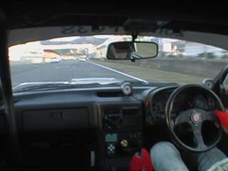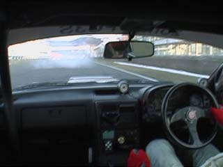 | 消灯でスタートです。 前のしらきち君(FD3S)とほぼ同時のスタートでした。 ってか私、初めてホイールスピンしました。(^^ゞ<スタートの瞬間 |