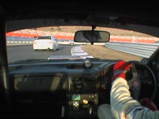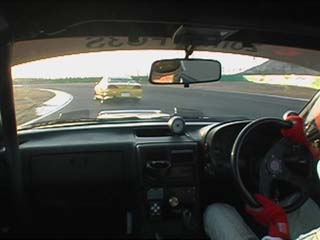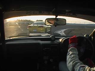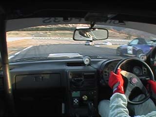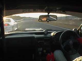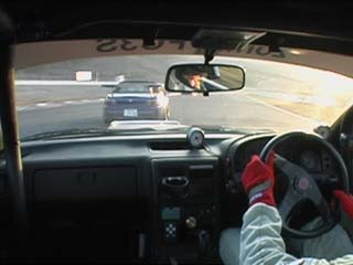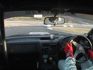 | すかさず飛び込む私。 当然の事ながらココの高速コーナー、 出口では少々アンダー出ました。(^^ゞ |