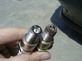 | 新品のプラグと見比べる。 写真ではわかりにくいですが、電極の太さが違います。 HKSのはNGKに比べて細い。 #大丈夫なんだろうか? でもって、今回初めて知ったんですが、 HKSのイリジウムプラグってDENSO製だったのね。(^^ゞ |