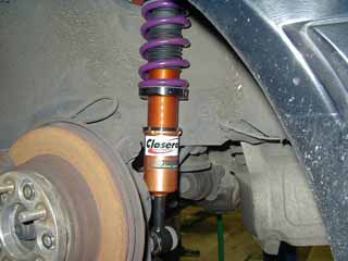 フロントの減衰力調整のダイヤルは下側にあります。 調整する時は、ジャッキを上げなくてもステアリングを 思い切って左右に切ると片側ずつ調整できます。(^^)v |