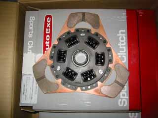 | 今回、POWER UPと共に伝達系も強化。 AUTOEXEの強化クラッチです。 右の写真は、メタルクラッチ・ディスクです。 高かったし、大事に使おう。(笑) |