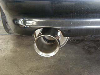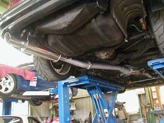 | マフラーはBLITZ製です。 「REALIZE TT」というヤツです。 コレは2本出用と1本出用が製品として設定あります。<FC3S オイラは安い方の1本出用をチョイス! 出口が助手席側なので、「頭文字D」みたい??(笑 |