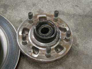 ブレーキ・ローターのみを交換するつもりが、 フロントハブにガタを発見!(左右共) 思わぬ出費が・・・。(@_@) しかし、偶然にもクロスレシオに社外品の 強化ハブの在庫有り!