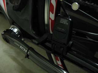 ケイデンス&速度センサーは一体型となっており、 写真の位置に固定します。 (外見すっきりのワイヤレスばい♪) |