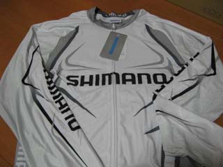 | 以前買った半袖のジャージは赤でちょっと派手目。(^^ゞ 今回は白いジャージを買おうと思ったんですが、そろそろ 夏も終わりで長袖の方が良いんじゃないかと同じshimanoの 長袖タイプのものを購入しました♪ |