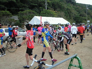 | スタート前! たくさんの自転車がガラクタのように見えます。 本当は高価な自転車ばっかなんですけど・・・。(^^ゞ |