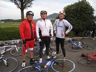 左から、Batさん、ターボぅさん、私。 こうして見ると、私はスリムです。 ちゅ〜か、貧弱に見えてしまいます。(^_^;) |