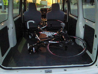 下道(一般道)も考えましたが、時間的に高速で。(^^ゞ ※レンタカーでETC割引使えなかったので、1200円。(涙 普通車でも1000円MAXな時代なのに・・・ 写真は多久西PAで撮影。 軽バンには楽々ロードバイクが積載できました♪ はい、ホイールも外さずに・・・。(^^)v ※車種はDAIHATSUの「HIJET CARGO(ハイゼット カーゴ)」 |