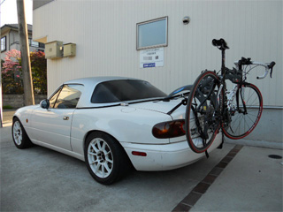 AM6:00起床し、準備を済ませ、AM7:00に 自宅を出発しました♪ 今回はレンタカーではなくドロハチ号です♪ トランクキャリアをはまけんさんからお借りしました。 ガッチリとまでは言えませんが、ある程度は しっかり固定できました。v(*'-^*)bぶいっ♪ ※往路で高速道路一区間(東脊振−佐賀大和間)を 100km/h走行しましたが、問題なし!v( ̄ー ̄)v |