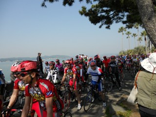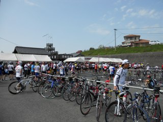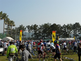 | 開会式会場。 徐々に徐々に人が増えてきました。 天気は最高、サイクリング日和ですね♪ |