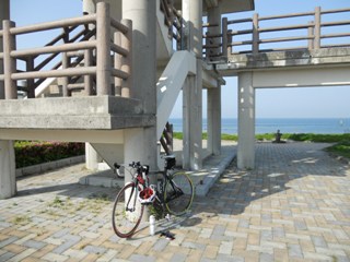 | 海岸線沿いは高低差の少ないけど、上り下りの”地獄のハーモニー”区間(?)。 確実に私の体内の糖分を使いやがります。 ましてや風も・・・。(>o<") なるべく単独走行にならないように自分と同じくらいか ちょっと遅めのバイクを見つけて、後ろをついていく作戦に。 しかし次第に右の脹脛がピクピクと・・・。 ヤな感じでした。 |