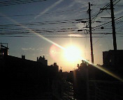 近所のコンビニへ朝食の買出しに。 ちょうど日の出の太陽を拝めました♪ この後、ドリンクボトルを自宅に忘れてる のに気付いて、一度帰宅。 出発はAM7:00ちょい前だったかな?(^^;; |