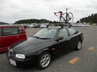 AM5:30起床した私。 準備を済ませて、Alfa156にKHARMAを積載。 少々肌寒い時間帯でしたが、気持ちよかった♪ |