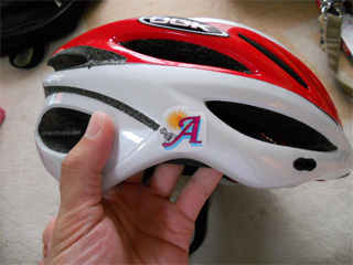 | お隣さんが作ってくれたシールをメットに貼って 走行しました。 何のマークだろう?と思ったら、「A」は 四阿屋(あずまや)の「A」らしい。 小さくて見えないけど、自転車に乗ってる絵は トモゾさん作だそうな♪ 気に入ってます。 v(*'-^*)bぶいっ♪ |