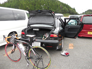 KHARMAの積載も終わり、後は帰るだけ。 って時にターボぅさん到着(ゴール)。 ターボぅさんにしては遅すぎる・・・。 駈け寄ってみると、序盤の広域農道で パンクし転倒(落車)した様子で傷だらけでした。(汗 幸い大きな怪我にはなってなかったようですが・・・。 パンクかぁ〜・・・。 私にも十分に起こる可能性があるもんね。 他人事じゃない。 楽しいイベントだけど、危険でもあるんですよ。 十分気をつけないと・・・と思った1日になりました。 |