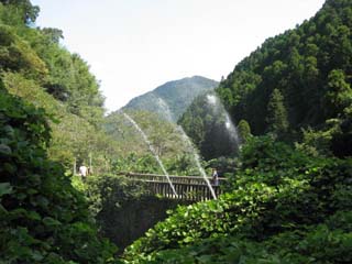 | タイミング良く、噴水状態!(^O^)/ 眼鏡橋って名前ですが、虫眼鏡みたいな 1つの円弧だけのアーチ橋でした。(^^ゞ |