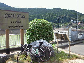 | 小石原を過ぎ、R211からR500へ分岐。 ココから下りだヤッホ〜〜イ!・・と思いきや、 右足の脹脛がピクピクっと痙攣! やべぇ〜・・・ペース落とすしかないやん! せっかくの下りなのに。。 つ〜わけで、ボチボチ下りコーナーを攻めました。(爆 江川ダム湖畔に到着の写真です! |