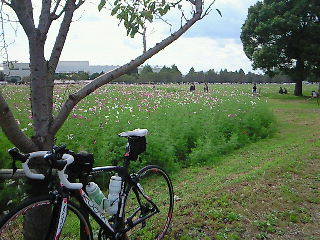 甘木を経由してR500を鳥栖方面へ向かってると・・・ キリンビール工場の横の敷地に、偶然にも ”コスモス畑”を発見! |