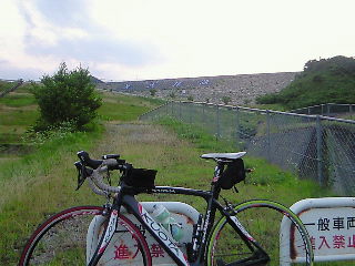 | 天拝湖の堤を下から見上げたとこです。 堤は石垣が綺麗に並べられて作られていました。 ココから天拝湖までは緩やかな登り坂です。 |