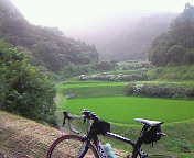 四阿屋Bルーベコースの序盤。 小さいながらも棚田があります。 (紫陽花も咲いてました♪) 空は少々霧が掛かって、ぼんやり白かったです。 湿度は高かったでしょうね。(^^;; |