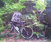 上の看板から、10mくらい川の方へ 下りたとこに小さい滝がありました。 滝というより、大きな石が川の流れを 堰きとめてる感じですね。(苦笑 でも、マイナスイオン・・・ BIKEで熱くなった私の体はひんやり感じました。 夏のちょいと休憩するにはイイとこかもね? (駐車場はありませんけど。。。) |