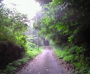 採石場からの道は細く、木々が生い茂ってて 暗く不気味でもあります。 雨上がりだったため、路面はウェットで落ち葉も沢山積もり 超スリッピーでした。(苦笑 |
