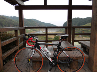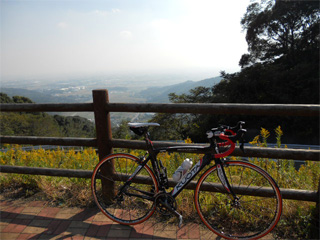 調子悪ければココで引き返す予定でしたが、 軽量ホイールの恩恵か、楽々スイスイ♪(笑 天気はイイのですが、空気が濁ってて 展望は最悪! 雲仙なんか見えません。(爆 |