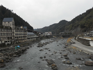 | 川の両岸に温泉旅館が建ち並んでます。 | ![]() |