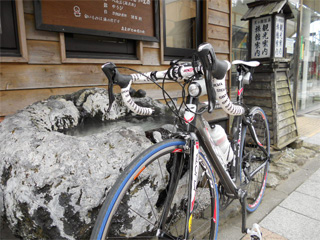平均速度を24km/hくらいに落として 騙し騙しで原鶴温泉に到着。 ココでコンビニで購入したアンパンとおにぎりを 摂取しました! 飲み物は500mlのポカリを買った。 |