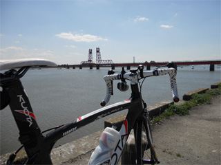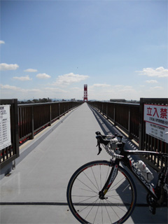 筑後川沿いの県道を南下し、昇開橋へ到着! 自宅からちょうど1時間です。 |