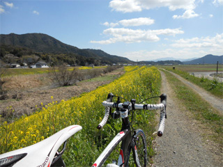 写真は六角川の岸辺に咲く菜の花です。 白石町から武雄市までは、とにかく 風が強かったっす! 普段は28km/hくらいで流せるんですが、 下ハンで風の抵抗少なくして頑張っても 16km/hまで速度が落ちてました。 風速、何m/sの風だったんだろう? |