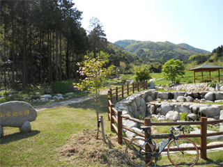 上の写真の交差点から暫く走ると 左側に工事中の公園がありました。 ちょっと寄り道♪ 昨年の水害の影響で復旧工事中らしい。 はい、入り口は車両通行止めで封鎖されてます。(爆 自転車なら良いでしょ!?(^^;; まだ工事中ですが、既に完成間近? 結構綺麗に整備されておりました♪ |
