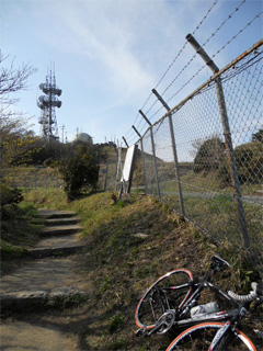 山頂の展望台までは歩いて登るんですね。 ちょっとバイクを担いで登ったけど、ココで 断念しました。(爆 ロードは担いで登って、担いで降りなきゃならないし。 自衛隊敷地前で遭遇したMTBのスペシャな 方は担いで登って行きましたが・・・。(^^;; MTBだと下りは乗れるもんね♪ |