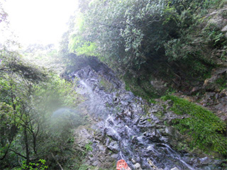 写真にぼやけてるとこがあるのは、 滝の水しぶきじゃありません。 雨粒なんです。 この時、既にオイラはびしょ濡れ状態。(爆 真夏なら森林浴効果もあり、涼しいのでしょうけどね。 |