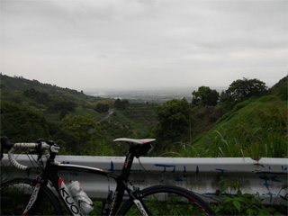 | 県道44号線の標高が一番高いトコ付近からの眺望です。 雨雲被ってますが、有明海が見えました♪(・ε・)/ |