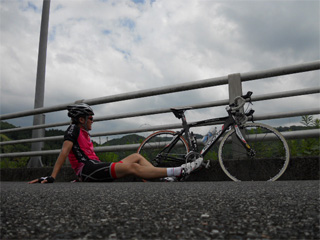 | 座って休憩中の図?? そんな事はありません。 日射で暑くなった路面に我慢して 座りました。 はい、撮影用。(^^;; |