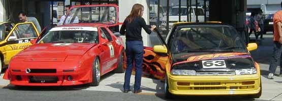 | 寝坊したので猛ダッシュでAPへ。 なんとかタイムスケジュールが遅れていたので 何とか間に合いました。(苦笑) 左側が御存知OLDBOYさんのFC3S。2連覇を狙います。 右側はromiさんとこのアイビス・シティ♪ |