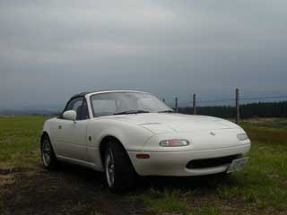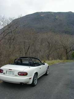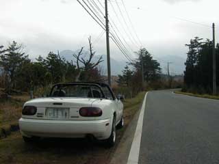 | 納車後、最初の遠出です。 オープンカーを満喫しようと思ったけど、 天気は生憎の曇り!(T_T) |