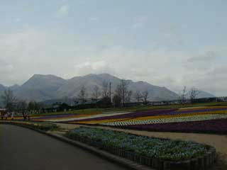 くじゅう花公園。 奇跡的に(?)久住連山を拝めました。m(__)m 写真に写ってる花の種類は・・・ そんなん覚えてないズラ!(爆 ※で・・・今ネット検索したら、「ビオラ」って花だってさ♪(笑 |