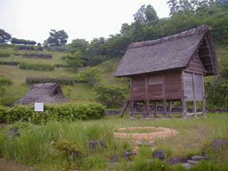 | 和泉式部公園って、何の公園なのかな?って 思っていたら、昔の住居が再現されてました。 右の写真は、高床式住居だったかしら? |