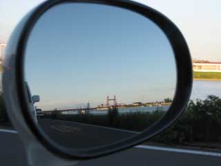 帰宅途中です。 大川市では今日は花火大会なのかな? 浴衣を着た若い娘達が・・・(笑 おかげで渋滞中。(爆 暇なので、偶然ドアミラーに映る夕焼けの昇開橋を・・・ 橋のさらに向こうは、雲仙です!(^^)v |
