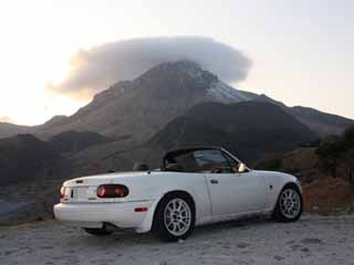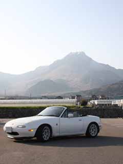 | 夕日が綺麗で、まゆやまロードを走ってみました。 気持ちよかったですよ♪ 正面の山は、雲仙の平成新山です。 最近寒かったせいか、山頂付近は 雪が積もってます。 雲が帽子に見えます。(笑 |